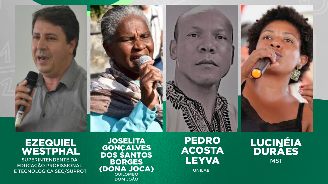 Atividade acontece de 14h às 16h, ao vivo Encerrando as mesas redondas da Mostra, o debate sobre “Práticas educativas relacionadas à bioeconomia” será realizado em 30 de julho, de 14h às 16h. A educação como motor para utilização sustentável dos recursos, a promoção do bem-estar das pessoas e a inclusão social, será discutida de modo a refletir sobre processos formativos formais e informais.  Para o debate, foram convidados o superintendente da Educação Profissional e Tecnológica (Suprot), Ezequiel Westphal; Dona Joca, do Quilombo Dom João, em São Francisco do Conde, Bahia; o historiador e teólogo Pedro Acosta Leyva, da Universidade da Integração Internacional da Lusofonia Afro-Brasileira (Unilab); Lucinéia Durães, dirigente nacional do Movimento dos Trabalhadores Rurais Sem Terra (MST). A mediação será de Carla Craice da Silva, do grupo de pesquisa Nyemba – Processos Sociais, Memórias e Narrativas Brasil/África – da Unilab. O superintendente da Suprot, Ezequiel Westphal, é historiador e sociólogo, com